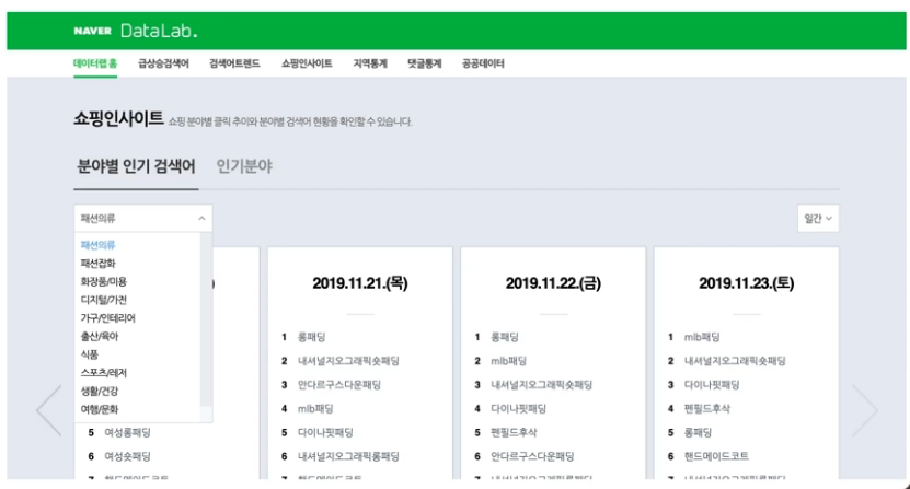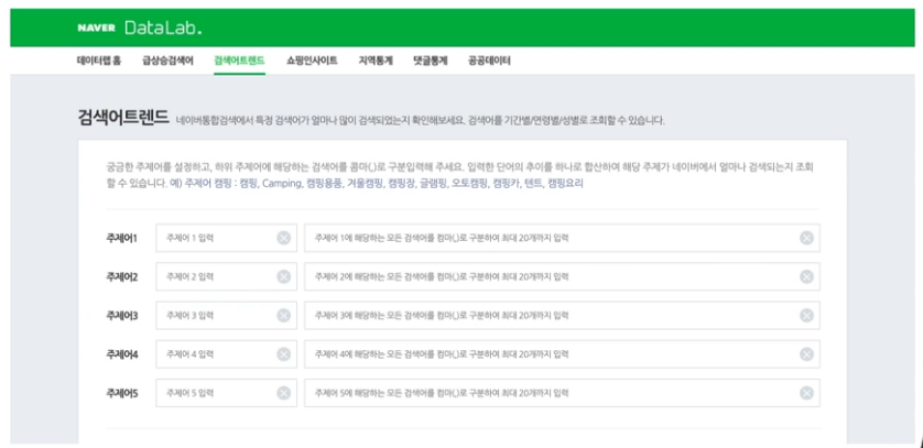 2. 네이버 데이터랩 : 검색어 트렌드로 검색해 보면 단어 선택하기 좋다