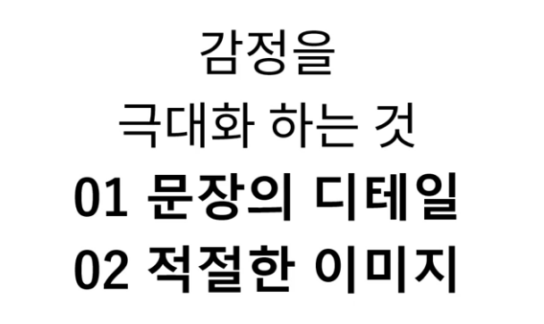 - 문장에 디테일을 넣어야 감정이 극대화된다