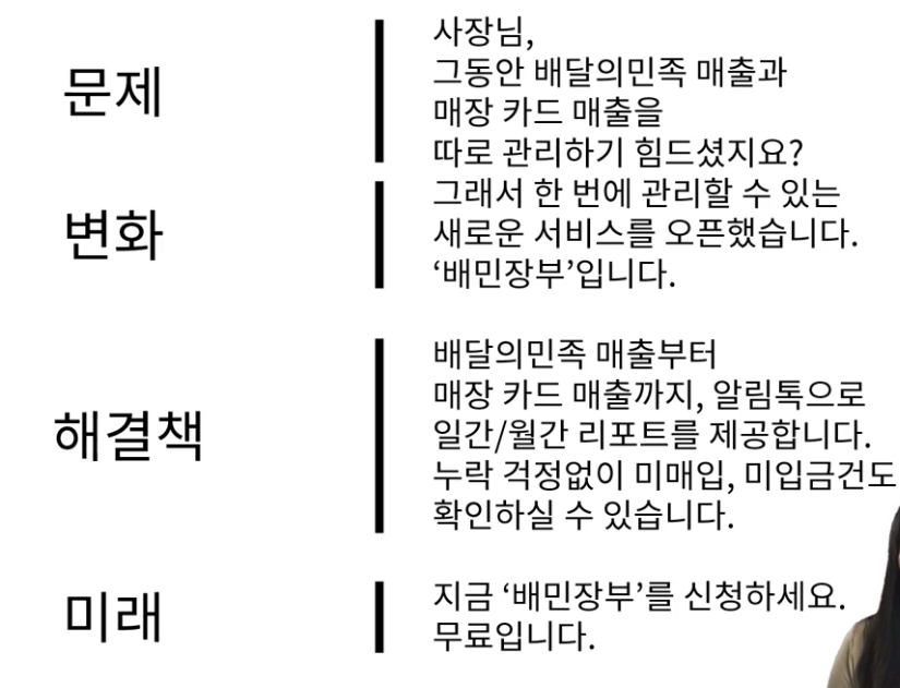 앞부분엔 해당 영업매니저님의 시선을 담은 사례를 사장님의 시선에서 보여주고