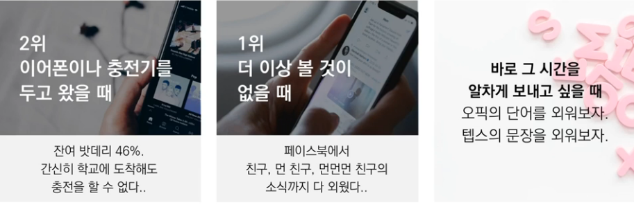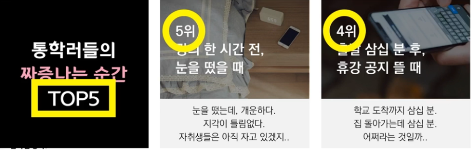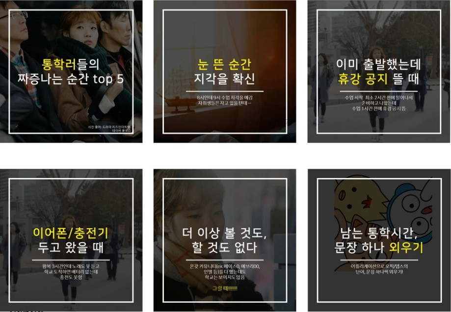 카드뉴스 : 이야기 전달 시 스토리에 몰입할 수 있게 함, 정보를 압축된 형태로 전달할 수 있다(단시간에 정보 캐치에 도움)