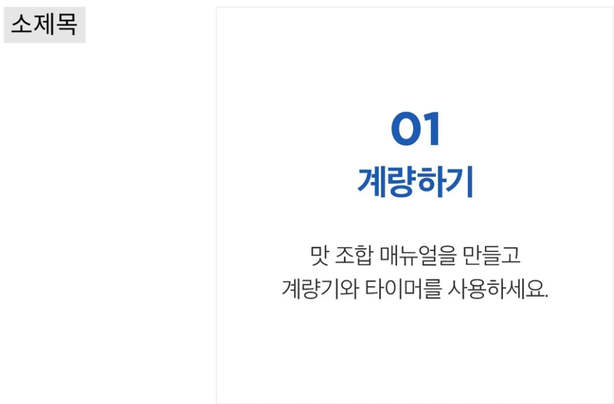 카드뉴스 : 요리 단계별로 자세히 설명해 주며 이미지를 보여줄 수 있다