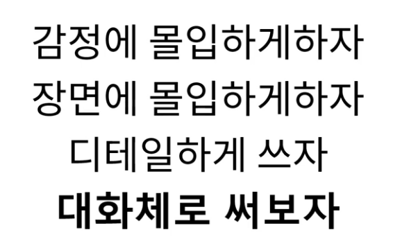 - 전지적 작가 시점이 아니라 1인칭 주인공, 관찰자 시점으로 쓰기