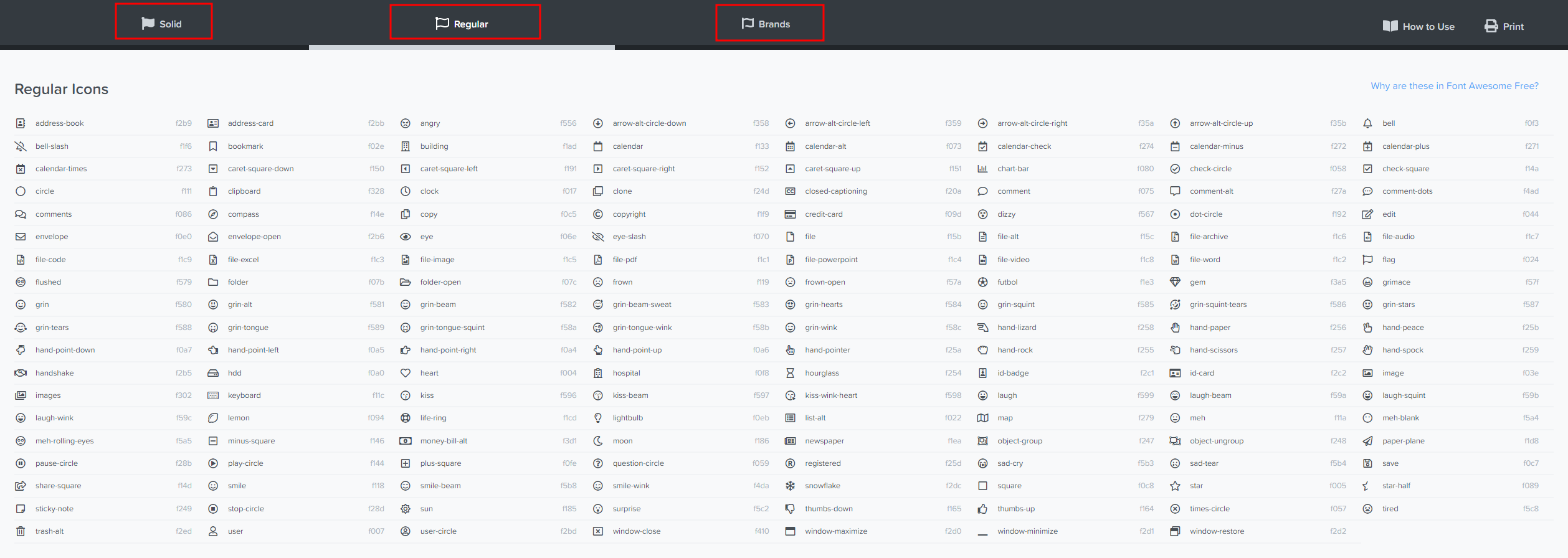 https://fontawesome.com/v5/cheatsheet/free/regular